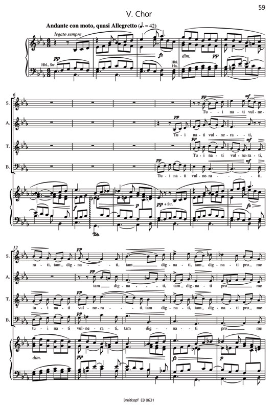 Dvorák, Antonin (1841-1904): Stabat Mater op. 58. Breitkopf Urtext, 86', Soli: SATB – gemCh – 2.2.2.2. – 4.2.3.0. – Pk – Org – Str. Die authentische Neuausgabe: textkritisch und komplett käuflich lieferbar (einzige Ausgabe mit Chorpartitur und einem historisch legitimierten Klavierauszug von Josef Zubatý).