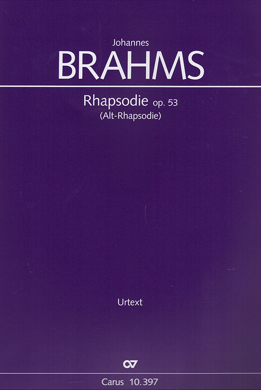 Johannes Brahms’ Alt-Rhapsodie erscheint hier in einer neuen, für die heutige Aufführungspraxis modernisierten kritischen Ausgabe. Sie stützt sich auf die zweite Auflage des Erstdruckes, da diese als der authentische Notentext nach letzten Revisionsmaßnahmen seitens des Komponisten zu betrachten ist. Die musikalische Umsetzung des Goethe-Gedichts Harzreise im Winter gelangt nach düsterem Beginn mit der Hinwendung an göttliche Kräfte auf eine hoffnungsvolle, neue Ebene. Das im Zusammenhang mit der Hochzeit der verehrten Clara Schumann-Tochter Julie 1869 geschaffene Werk beeindruckt vor allem durch die persönlich tangierte Note, die in ihrer progressiven Harmonik wegweisend war und bis heute durch ihre enorme kompositorische Kraft ins Konzert lockt.