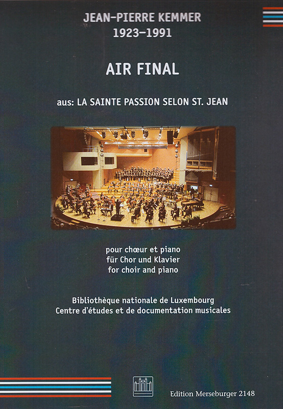 Das AIR FINAL ist der Schlusschor der Johannes-Passion von Jean-Pierre Kemmer und eignet sich gleichermaßen für Konzert und Gottesdienst. Er macht neugierig auf die große Passion, die in jeder Hinsicht eine bemerkenswerte Vertonung des Johannes-Evangeliums ist: die kompositorische Sprache ist brillant und die Textausdeutung leicht nachzuempfinden. Es ist ein Werk, das durch die geglückte Verbindung eines eher traditionellen sinfonischen Musikstils mit Jazz- und Tanzrhythmen begeistert und dadurch dem breiten Publikum zugänglich ist.