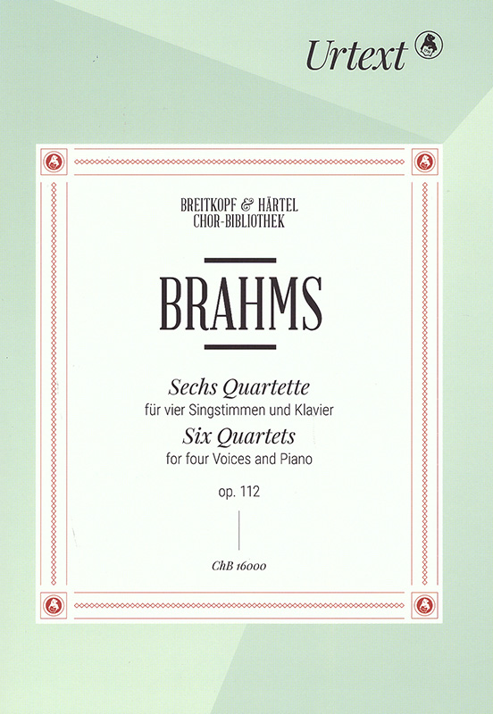 Während seines Sommerurlaubs im Jahr 1891 komponierte Brahms sechs Vokalquartette, die noch im Herbst des gleichen Jahres im Druck erschienen. Diese Zusammenstellung, später Brahms’ Opus 112, ist deutlich in zwei Gruppen aufgeteilt. Zwei im melancholischen Tonfall gehaltene Vertonungen der Gedichte Sehnsucht und Nächtens von Franz Kugler treffen auf vier vor Vitalität und Kraft berstende Zigeunerlieder. Die ersten öffentlichen Aufführungen des Werks wurden sehr positiv aufgenommen. Noch zu Lebzeiten Brahms’ trat neben den ursprünglich vorgesehenen Vortrag durch vier Solostimmen auch die Ausführung durch Chöre. Breitkopf & Härtels neue Ausgabe der Quartette folgt dem kritisch edierten Notentext der Johannes Brahms-Gesamtausgabe.