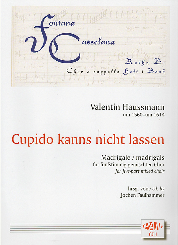 Cupido kanns nicht lassen. Unter diesem Titel verbirgt sich eine Sammlung von sieben fünstimmigen Madrigalen des Komponisten Valentin Haussmann, herausgegeben von Jochen Faulhammer in der Reihe „Fontana Casselana Reihe B, Chor a capella Heft 1“. Die weltlichen Stücke sind für gemischten Chor in der Besetzung SSATB notiert und haben ein mittleres Anforderungsniveau.