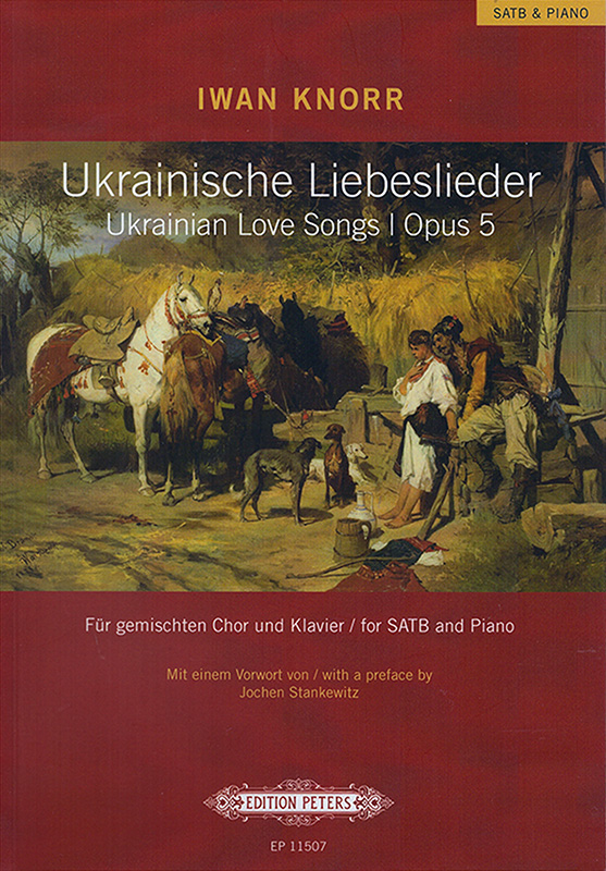 Iwan Knorrs Ukrainische Liebeslieder op. 5 für vierstimmigen Gesang und Klavier entsprechen in ihrer wahlweise chorischen oder solistischen Besetzung den Liebeslieder-Walzern op. 65 von Johannes Brahms und brauchen diesen Vergleich auch qualitativ nicht zu scheuen. Von der Tradition der ukrainischen Kosaken inspiriert, besticht der neunteilige Zyklus durch die reizvolle Verbindung von lyrisch-romantisch geführten Singstimmen und temperamentvoll-virtuoser Klavierbegleitung. Die Texte erzählen von leidenschaftlicher Liebe, heldenhaften Kriegern und bangem Warten.