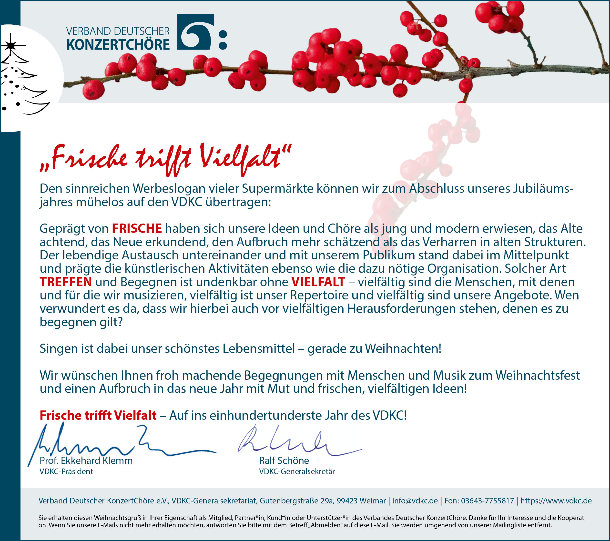 Neujahrsgruß des VDKC-Präsidenten Professor Ekkehard Klemm