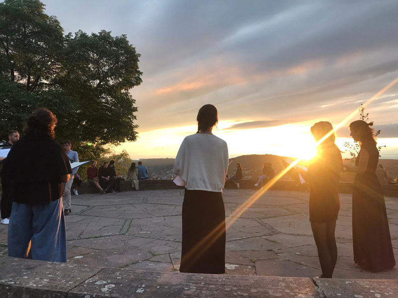 Im Spätsommer durften die Mitglieder des Chores durch einige Open Air-Auftritte musikalische Sonne in die Stuttgarter Innenstadt bringen. In vier Oktette aufgeteilt sind sie über den ganzen September verteilt im Freien auf das Publikum zugegangen. Jedes Oktett gab mindestens zwei A-cappella-Konzerte an verschiedenen Stuttgarter Plätzen und konnte so auch Menschen erreichen, die sonst nicht in Kontakt mit klassischer Musik kommen.