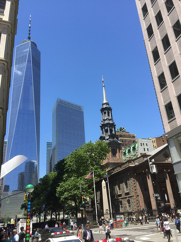 Wie in Yale ist auch in New York die Nachahmung der englischen Bauweise unverkennbar. In unmittelbarer Nähe zum World Trade Center in Manhattan steht die St. Paul's Chapel, die quasi ein St Martin-in-the-Fields umgeben von Wolkenkratzern darstellt. Dort gab cantissimo ein Mittagskonzert, unbeeindruckt von U-Bahn- und sonstigem urbanen Lärm.