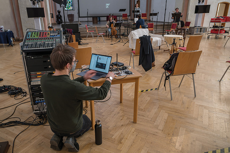 Im nächsten Schritt waren Proben im Freien oder in Hallen, die ausreichend Platz zur Einhaltung der Abstandsregeln boten und über gute Lüftungsanlagen verfügten, möglich. Aber je nach aktueller Corona-Lage war dieser Probenmodus oft nicht von Dauer.