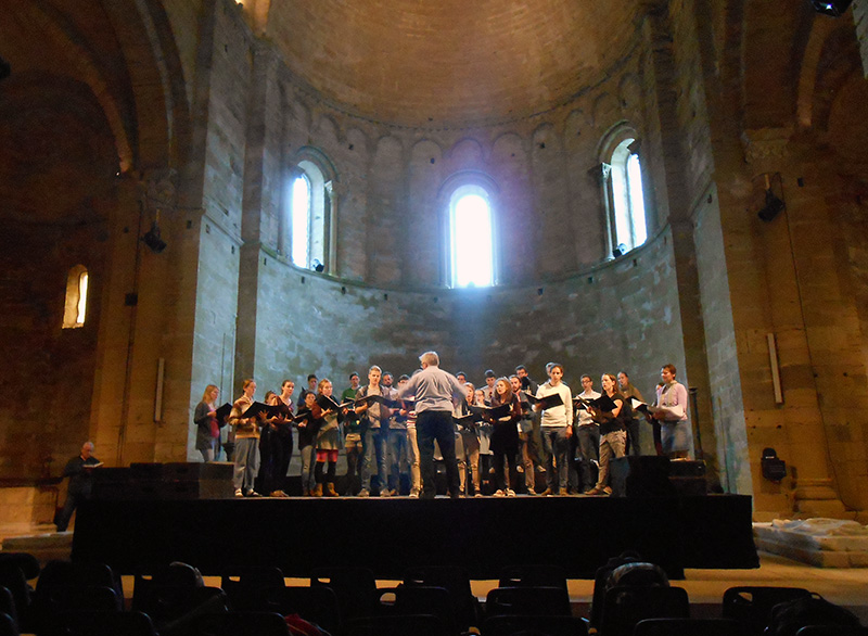 In den romanischen Mauern der alten Kathedrale Maguelone, direkt am Mittelmeer gelegen, nutzten wir die ausgezeichnete Akustik und musizierten vor einem beeindruckten Kreis an Besuchern, die uns gern zuhörten. Anschließend wagten sich einige Unerschrockene aus dem Chor noch in die Meeresfluten.