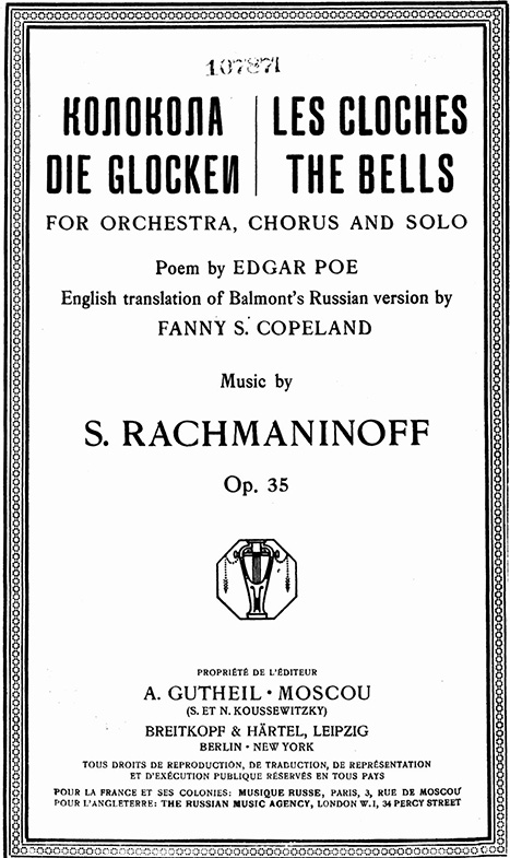 Letztlich bleibt noch die Frage, welche Sprache verwendet werden sollte. Eindeutig lässt sie sich nicht beantworten. Rachmaninoff war bewusst, dass er mit Konstantin Balmonts Text eine freie Übersetzung von Poes Poem vertonte, dessen Originalverse nicht zur Musik passen. Für die 1920 von Aleksandr Gutheil herausgegebene Veröffentlichung von „Die Glocken“ fertigten Berthold Feiwel einen deutschen Text und Fanny S. Copeland eine neue englische Version an, die in der Einleitung und als Unterzeile zum russischen Original in den Noten abgedruckt wurden. Die Kantate „Frühling“ erschien 1903 mit dem russischen Text von Nikolai Nekrasow und einer deutschen Gesangsfassung; das „Vigil“ als „Songs of the Church“ 1920 in einer vom Komponisten autorisierten englischen Fassung. In unserer Zeit wäre die Originalversion vorzuziehen – diese wird auch stets bei Janáčeks „Mša glagolskaja“ verwendet; dabei ist kaum jemand des alten Kirchenslawisch mächtig, während es einfacher erscheint, russische Muttersprachler als Berater zu finden.