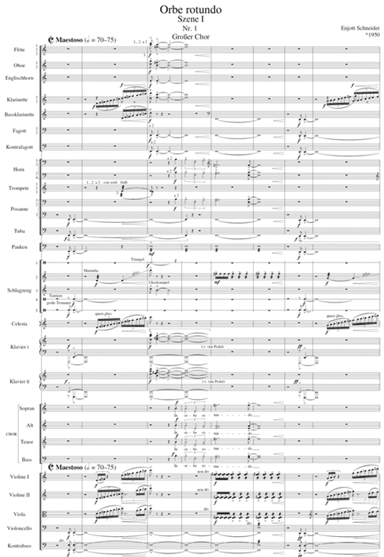 Anlässlich des 50jährigen Jubiläums des Münchner MotettenChors entstand der Wunsch nach einem geeigneten Werk für das Jubiläumskonzert. Zu den "Carmina burana" von Carl Orff, zu denen der Chor im Laufe seines Wirkens eine besonders intensive Beziehung aufgebaut hat, sollte eine zweite Komposition mit derselben Besetzung kommen. Enjott Schneider wurde um eine entsprechende Komposition gebeten. Es entstand „Orbe rotundo“, ein szenischer Bilderbogen zum Jahreskreis nach lateinischen und mittelalterlichen Texten als Schwesterwerk zu Orffs "Carmina burana". Die Uraufführung fand am 5. Dezember 2010 unter Leitung von Hayko Siemens im Herkulessaal der Residenz München statt. Das Werk dauert rund 50 Minuten und ist bei Schott Music International erschienen.
