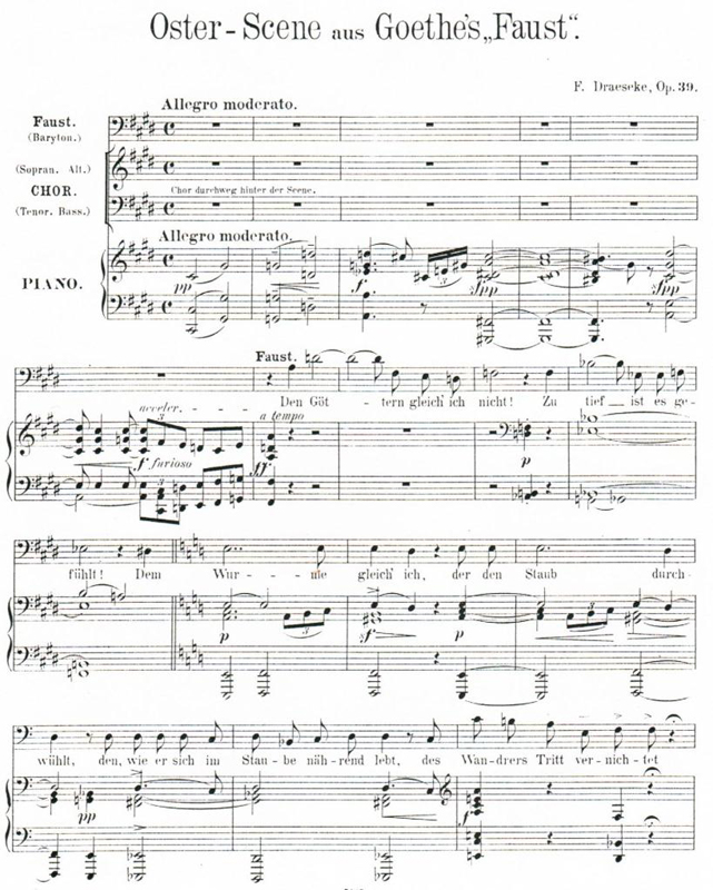 „Ob die im Winter 1863/64 in Angriff genommene Vertonung aus Goethes Faust als geistliche Musik im engeren Sinne oder als Bühnenmusik zu verstehen ist, stellt bei der bürgerlichen Goethe-Rezeption der Zeit nicht ein-mal einen entscheidenden Unterschied dar, wohl aber die Differenz von christlichem und bürgerlichem Verständnis von Religiosität in der Musik. Die Osterszene op. 39 wurde erst in den Jahren 1886/87 fertiggestellt.“ (siehe Helmut Loos, Die Geistliche Musik von Felix Draeseke a.a.O.S.198).
