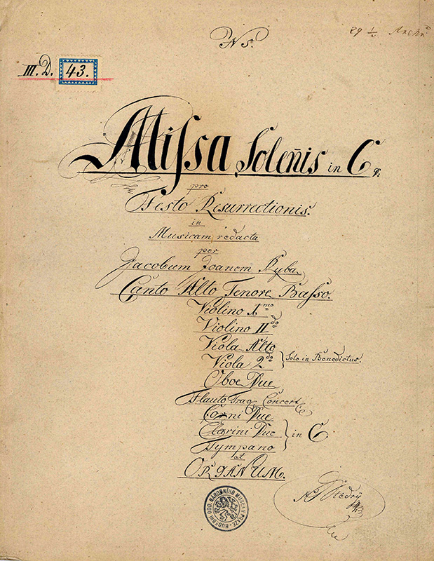 Von Jakub Jan Rybas umfangreichem Werk ist nur etwa ein Drittel erhalten geblieben. Der Großteil seines Nachlasses wird im Museum für tschechische Musik in Prag Prag (České Muzeum hudby) aufbewahrt. Dort befinden sich die meisten der erhaltenen Handschriften. Der Nachlass Rybas wurde zunächst von Antonín Štědrý aufbewahrt. Über ihn gelangten die Handschriften ins Museum nach Prag, wobei es einer umfangreichen Forschungsarbeit bedarf zu unterscheiden, welche Autographen wirklich von Rybas Hand stammen und welche Blätter Abschriften aus verschiedenen Kirchen in Tschechien sind.
