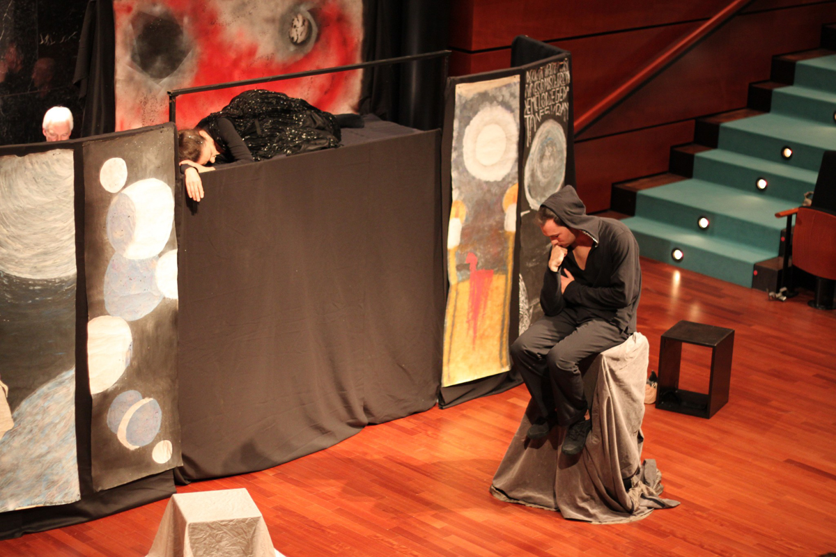 Im Mittelpunkt des Konzertes im Kammermusiksaal des Bonner Beethoven-Hauses am 27.10.2012 stand die szenische Aufführung von Schoenbergs „Pierrot Lunaire" op. 21. Der Komponist interpretiert Verse des Dichters des Symbolismus, Albert Giraud, zum Thema Mondsucht, zur Faszination des Himmelkörpers, der die Anziehungskraft des Dunklen und Geheimnisvollen repräsentiert. In der neuartigen „musikalischen Prosa" für Sprechstimme und Kammerensemble legt Schoenberg Rhythmus und Tonhöhe des Sprechgesangs präzise fest und erreicht damit höchst expressive Wirkung.