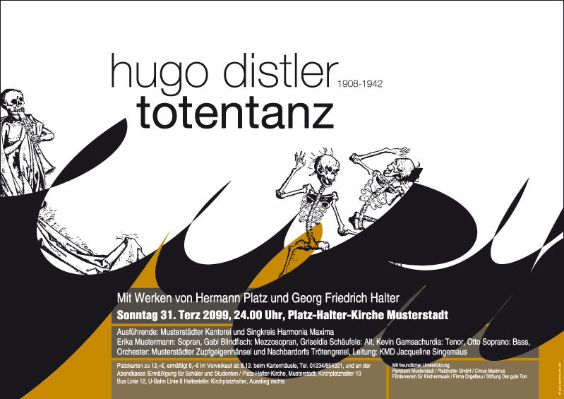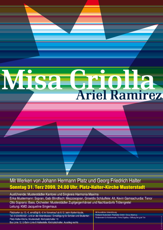 Plakate sind auch im Internet-Zeitalter unverzichtbare Medien, um für Konzerte und andere kulturelle Veranstaltungen zu werben. Eine brillante Idee, die Möglichkeiten des World Wide Web für wirkungsvolle und kostengünstige Werbung zu nutzen, haben Cosima Boeck und Susanne Schwarz aus Ulm umgesetzt: Auf "plakatreich.de" bieten sie hochwertige Vorlagen für Plakate und Flyer an mit dem Schwerpunkt geistliche Musik. Auf einfachste Weise können Veranstalter damit individuelle Werbemedien erhalten. Auch die komplette Druckabwicklung und die Lieferung frei Haus gehören zum Service.