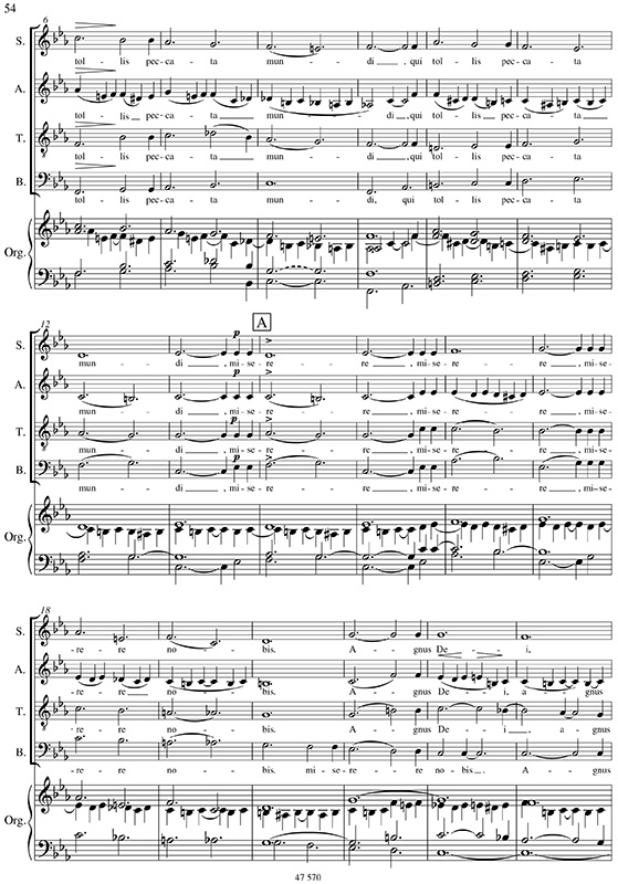 Grundsätzlich ist in der ganzen Messe op. 147 von einem dichten Legato (molto legato) auszugehen, bei dem man sich nicht scheuen sollte, auch Kommata im Messetext zu ‚übersingen’, wenn es die musikalische Syntax erfordert, so z.B. im Kyrie Takt 25 bis 28 oder Takt 28 bis 31. Grundsätzlich sollte nicht zu kleingliedrig musiziert werden (Stichwort: „unendliche Melodie“). Im Detail geht es um ‚strebsame, sehnsuchtsvolle’ Auftakte, breit genommen, so dass beispielsweise die „1“ nur die Reaktion der aktiven „4“ ist entsprechend der Lehrmeinung von Hugo Riemann, dem bedeutendsten Musiktheoretiker der 2. Hälfte des 19. Jahrhunderts: „alle Musik ist auftaktig“, so beispielsweise im Kyrie Takt 40,4 → Takt 41,1.