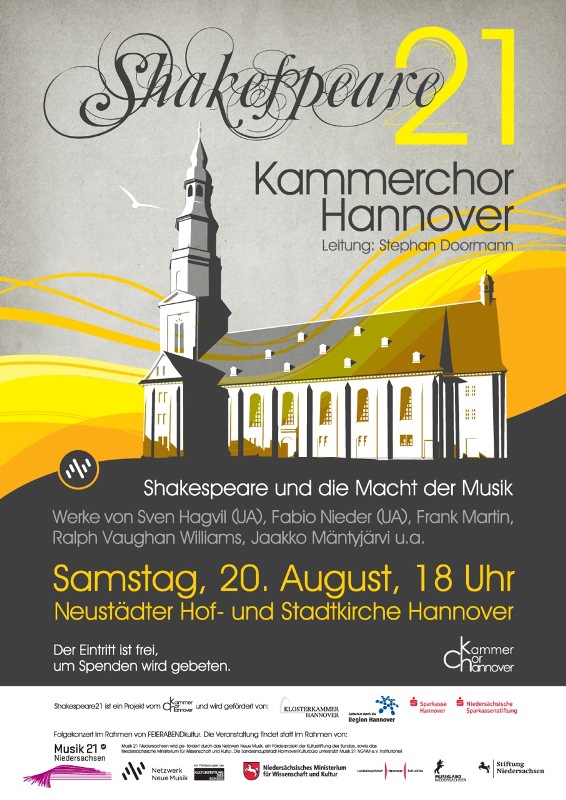 Shakespeare21 ist ein Projekt des Kammerchor Hannover und wird gefördert durch die Niedersächsische Sparkassenstiftung und die Sparkasse Hannover, Klosterkammer Hannover, Region Hannover, Musik21 und den Lüneburgischen Landschaftsverband aus Mitteln zur regionalen Kulturförderung. Der Kompositionsauftrag des Kammerchor Hannover wurde unterstützt von Musik 21 Niedersachsen.