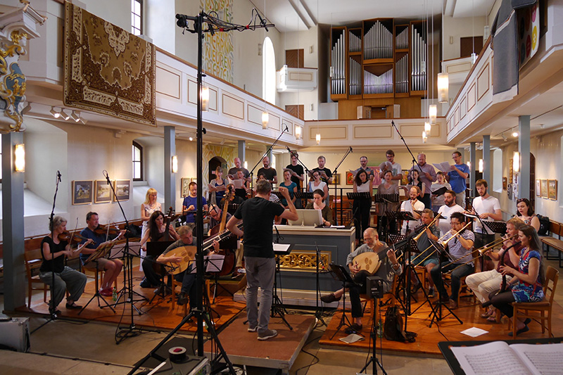 Die letzten Aufnahmen für die weltweit erste Heinrich-Schütz-Gesamteinspielung sind im Kasten: Am 26.07.2018 haben Dirigent Hans-Christoph Rademann und der Dresdner Kammerchor mit weiteren Solisten und Instrumentalisten in der Stadtkirche Radeberg die Aufnahmearbeiten für die letzten noch fehlenden Werke abgeschlossen. Die zugehörige CD „Heinrich Schütz – Psalmen & Friedensmusiken“ erscheint im Juni 2019. Dann wird das umfangreiche Werk des Dresdner Hofkapellmeisters Heinrich Schütz erstmals vollständig auf CD vorliegen.