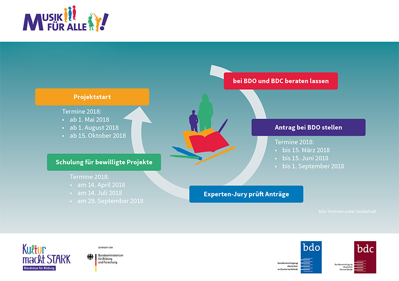 Für das millionenschwere Förderprogramm „Musik für alle!“ der Bundesvereinigung Deutscher Chorverbände e.V. (BDC) und der Bundesvereinigung Deutscher Orchesterverbände e.V. (BDO) ist der Startschuss gefallen. Die Online-Datenbank, in der die Förderanträge gestellt werden, wurde im Februar live geschaltet. Die Frist für die erste von drei Antragsrunden dieses Jahres endet bereits am 15. März, so dass die Kinder und Jugendlichen im Rahmen des Programms zum 1. Mai 2018 mit dem Musikmachen beginnen können.