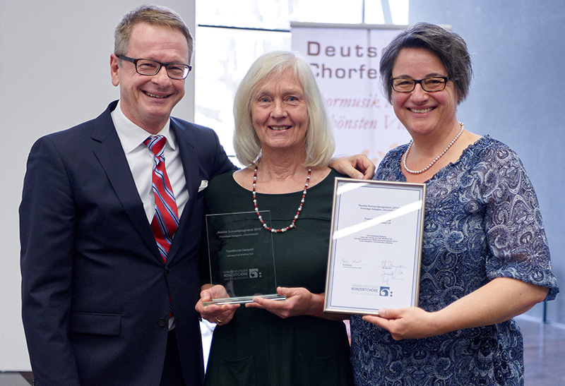 In einer festlichen Matinee im Haus der Chöre in Frankfurt wurde am Sonntag, 26. März die Auszeichnung „Bestes Konzertprogramm 2016“ vergeben. Der Verband Deutscher KonzertChöre in Hessen/Rheinland-Pfalz/Saarland hat damit außergewöhnliche und kreative Konzertprogramme herausgehoben und gewürdigt.