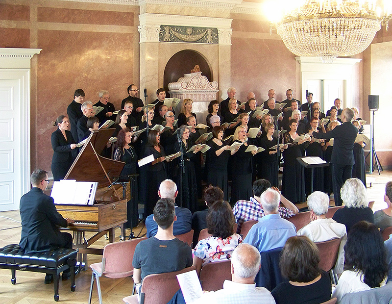 Mit einem Programm aus neun ausdrucksstark interpretierten Liedern hat der Fuldaer Konzertchor Winfridia am vergangenen Sonntag im Stadtschloss aufgewartet. Im intimen Rahmen des klassizistisch ausgestalteten Marmorsaals brachte er in Begleitung von Torsten Mann am zeitgenössischen Hammerflügel die Vierstimmigen Gesänge von Joseph Haydn (1732 bis 1809) zur Aufführung. Durch das harmonische Zusammenspiel von Ambiente, Instrument und Gesang wurde das Publikum scheinbar mühelos zurück in kurfürstliche Zeiten versetzt und ganz in den Bann des sommerlichen Stundenkonzertes gezogen.