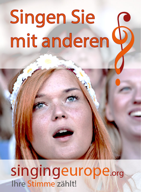 Das Projekt "Singing Europe" möchte diese und andere Fragen zur künstlerischen, demographischen und ökonomischen Situation der Chöre in Europa beantworten. Dazu werden Antworten von einzelnen Chören und Gesangs-Gruppen sowie Statistiken und Informationen von Chorverbänden gesammelt, um ein Bild des "singenden Europas" zu erstellen. Die Ergebnisse mit einem Vergleich zwischen den verschiedenen Ländern sollen 2015 veröffentlicht werden. Ziel des Projekts Singing Europe ist außerdem, eine europaweite Debatte über das Singen anzuregen. Alle Organisationen, die sich mit Chormusik und Gesang befassen, können die Ergebnisse dieser Studie als wertvolles Hilfsmittel für ihre Öffentlichkeitsarbeit verwenden.