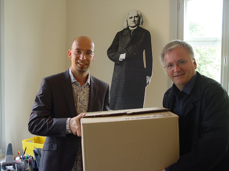 Unter den Augen des Hausherren Franz Liszt eröffnete VDKC-Präsident Ekkehard Klemm am 27.08.2013 das neue Büro des VDKC-Generalsekretariates in Weimar. Symbolisch räumten Prof. Klemm und Generalsekretär Ralf Schöne den letzten Umzugskarton aus.