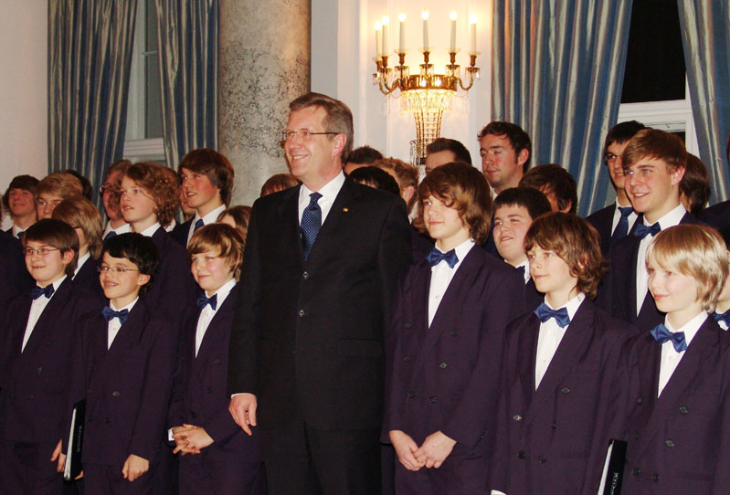 Abweichend vom Protokoll führte Bundespräsident Wulff die Chorsänger spontan durch seine Amtsräume. Sogar auf dem Sofa für Staatsgäste durften die Sängerknaben probesitzen.