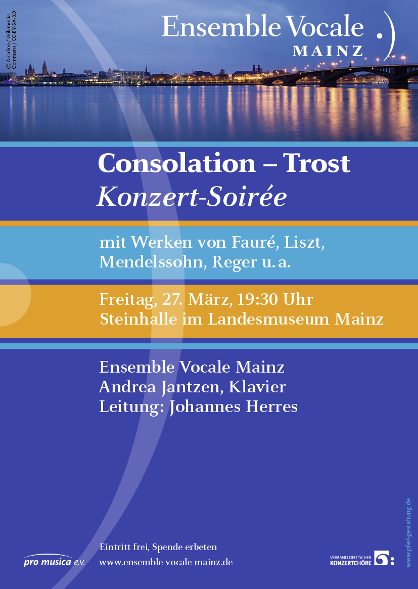 In dem vorwiegend geistlichen Programm u. a. mit den Werken von Pierre Villette, "Notre Pere d'Aix" und Gabriel Faure, "Cantique de Jean Racine", wird die rastlose Bewegung unterbrochen. Passend zur Passionszeit kehrt Besinnung ein, Sorgen und Ängste verfliegen für eine Weile. Wir fühlen uns ein wenig getröstet. "Trost", so nennt Max Reger eine seiner Kompositionen.