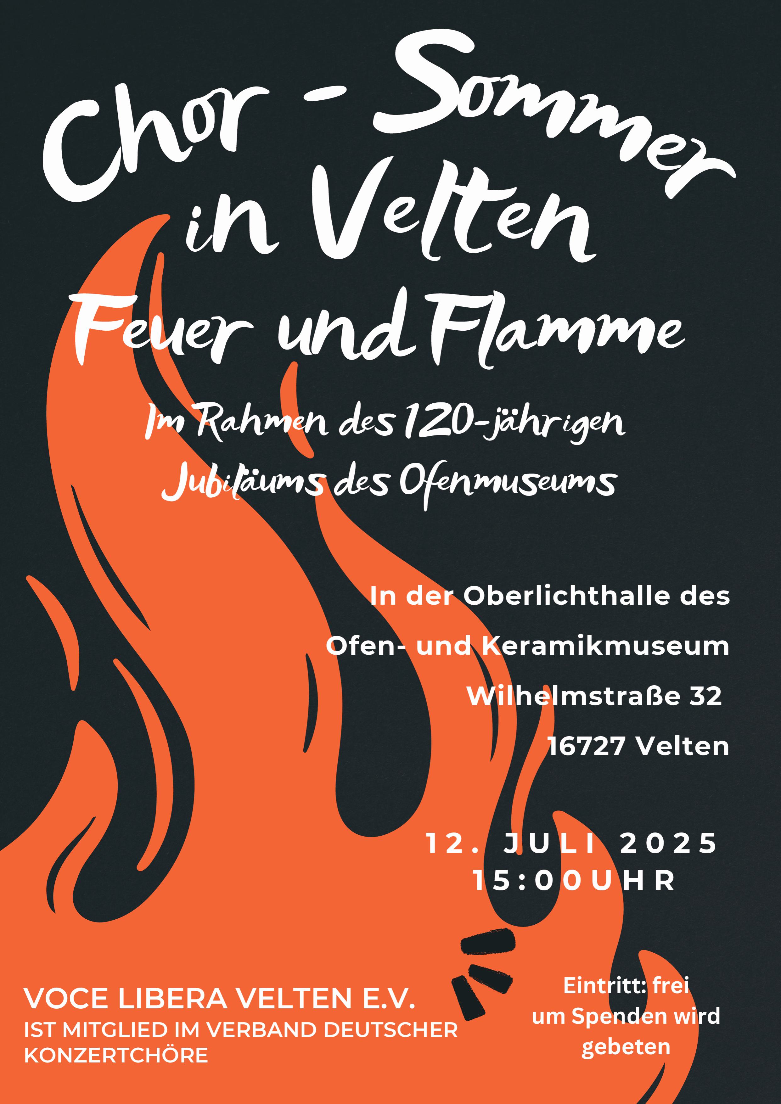 Im Rahmen des 120-jährigen Bestehens des Ofenmuseums Velten präsentiert Voce libera sein Sommerprogramm "Feuer und Flamme"