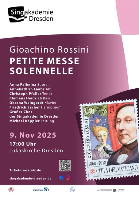 - Sie haben entschieden! Das Konzert zum 9. November war als Wahlkonzert angelegt, die Wahl bestand zwischen den bekannten Requiem-Fassungen von Johannes Brahms und Gabriel Faure und der originellen und eigenwilligen Vertonung des Messtextes durch den Belcanto-Meister Gioachino Rossini aus dem Jahr 1863. Die „Petite Messe“, die so klein doch aber gar nicht ist, ist ein Alterswerk Rossinis, dessen letzte Opernvertonung zum Zeitpunkt der Entstehung der Messe bereits vierunddreißig Jahre zurücklag. Selbstironisch und mit dem ihm eigenen Understatement schreibt Rossini über sein meisterhaftes Spätwerk: „Lieber Gott. Hier ist sie, die arme kleine Messe. Habe ich nun wirklich heilige Musik („musique sacrée“) gemacht, oder doch vermaledeite Musik („sacrée musique“)? Ich bin für die Opera buffa geboren. Du weißt es wohl! Ein bisschen Können, ein bisschen Herz, das ist alles. Sei also gepriesen und gewähre mir das Paradies!“ Im Konzert wird die von Rossini selbst bevorzugte Fassung der Uraufführung seines Stückes für die Besetzung Solistinnen und Solisten, Klavier, Harmonium und gemischten Chor zu hören sein.