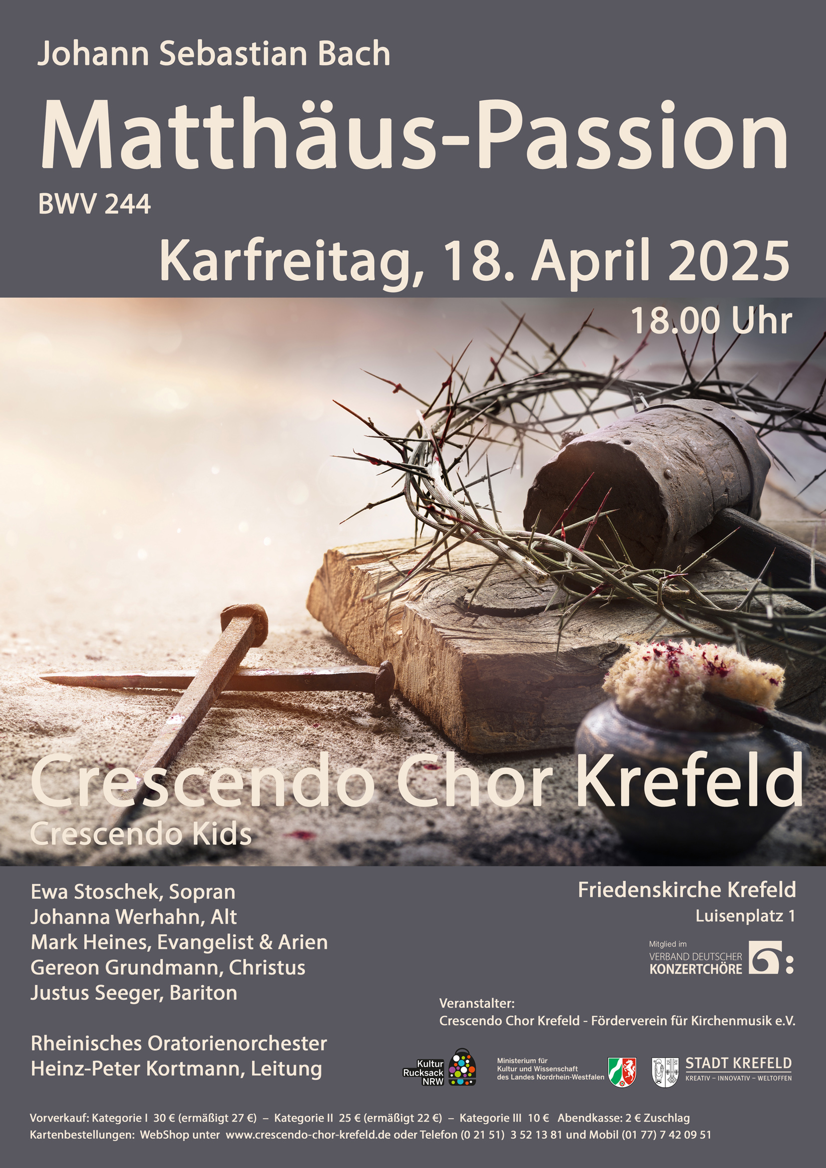 Tickets sind ca. 8 Wochen vor dem Konzert in unserem WebShop erhältlich.