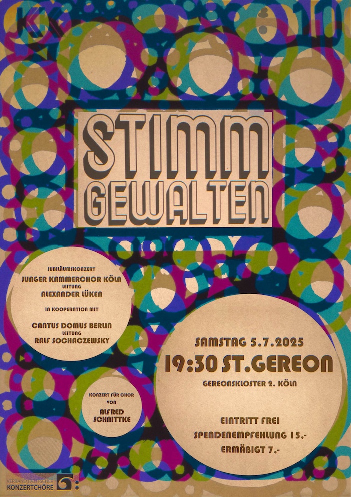 In diesem Jahr wird der Junge Kammerchor Köln 10 Jahre alt. Zum Anlass dieses Jubiläums finden einige besondere Konzert statt. Dieses Kooperationskonzert mit dem Cantus Domus aus Berlin ermöglicht uns große Acapella-Werke wie das 40-stimmige "spem in alium" von Thomas Tallis oder das Hauptwerk des Abends "Konzert für Chor" von Alfred Schnittke zu präsentieren. Werke, die aufgrund ihrer Größe und Komplexität nicht häufig aufgeführt und gehört werden können. Kommt also gerne vorbei und lasst euch von einer wohligen Klangwolke einhüllen.