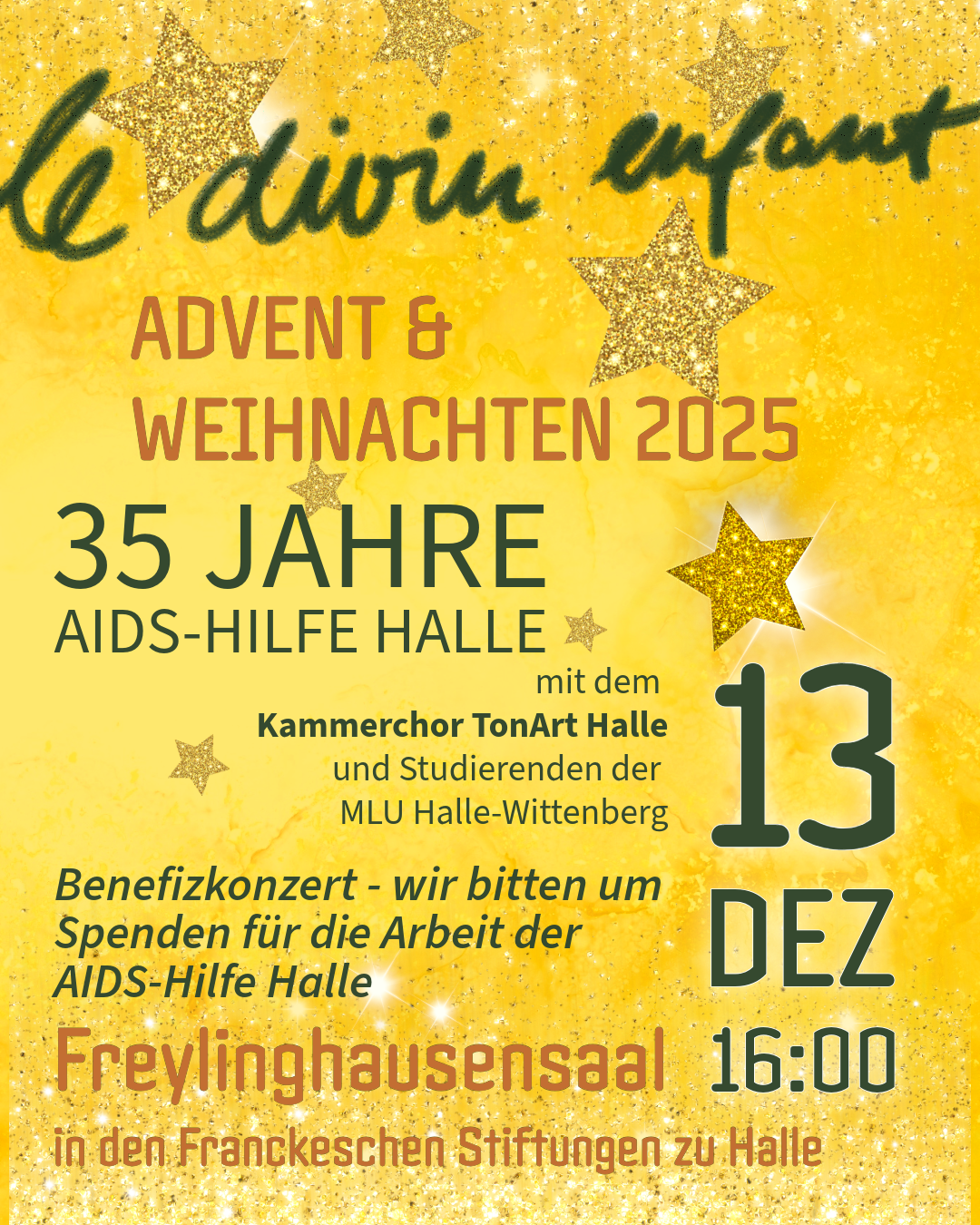Benefizkonzert: 35 Jahre AIDS-Hilfe Halle 📍 Sa, 13.12.25, 16:00 Uhr | Freylinghausensaal Kommt vorbei, genießt den festlichen Rahmen und tut Gutes! ❤️