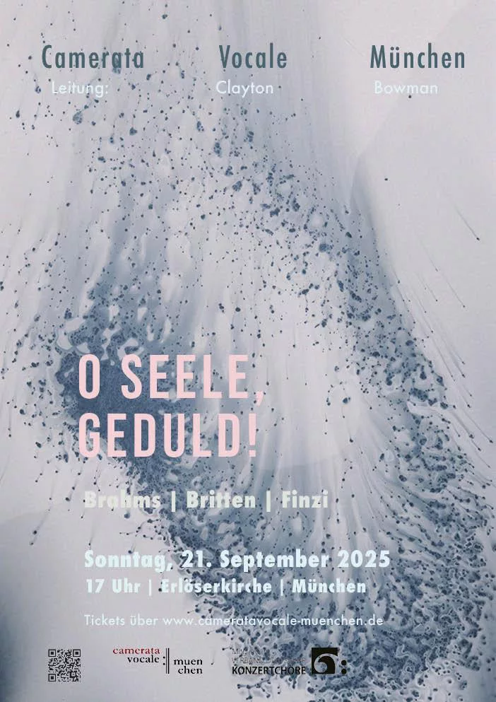 Die Camerata lädt zum Konzert „O Seele, Geduld!“ mit Chormusik von Brahms, Britten und Finzi, am Sonntag 21. September 2025 in der Erlöserkirche an der Münchner Freiheit ein.