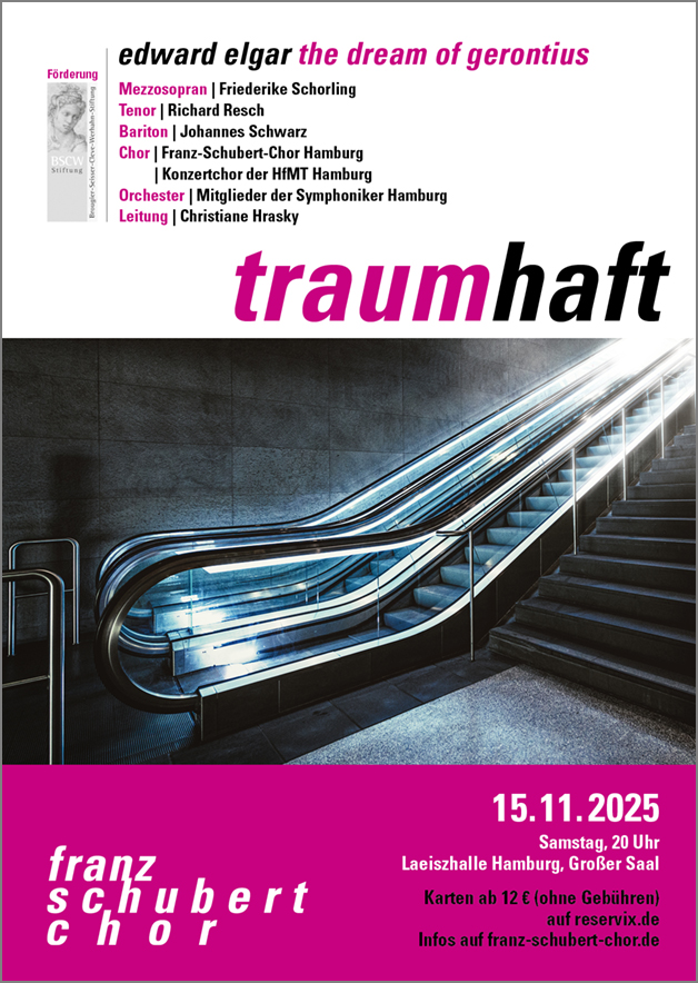 Auf manche Fragen weiß nur die Religion Antworten – und die Kunst. Eine musikalisch und emotional besonders mitreißende gibt der englische Komponist Edward Elgar mit seinem Oratorium The Dream of Gerontius, das der Franz-Schubert-Chor Hamburg auf die Bühne der Laeiszhalle bringt.