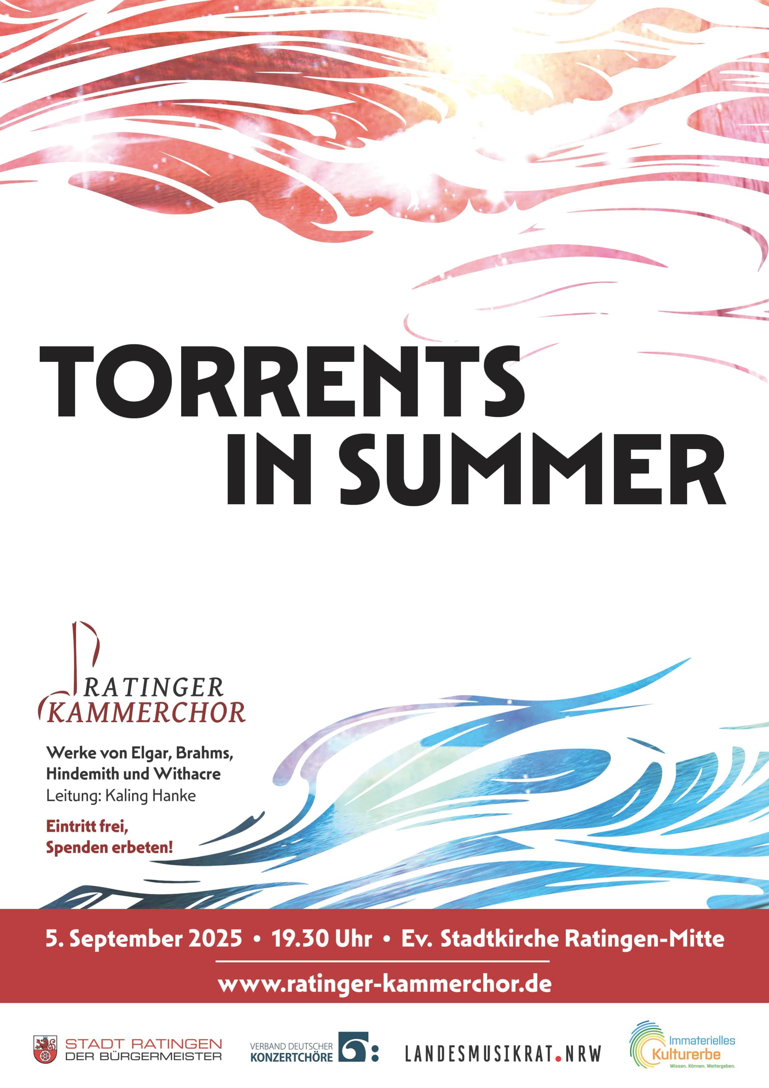 Das Thema „Torrents in Summer“ greift die Symbolkraft des Wassers auf: Es steht für Bewegung, Verbindung und Veränderung. Die Musik des Abends spiegelt diesen Fluss wider – sie führt durch Momente der Stille und des Chaos, von zarter Besinnung bis hin zu intensiver Dramatik. Sie erzählt von Liebe, Sehnsucht, Freude und Trauer und davon, wie eng all diese Empfindungen miteinander verwoben sind.