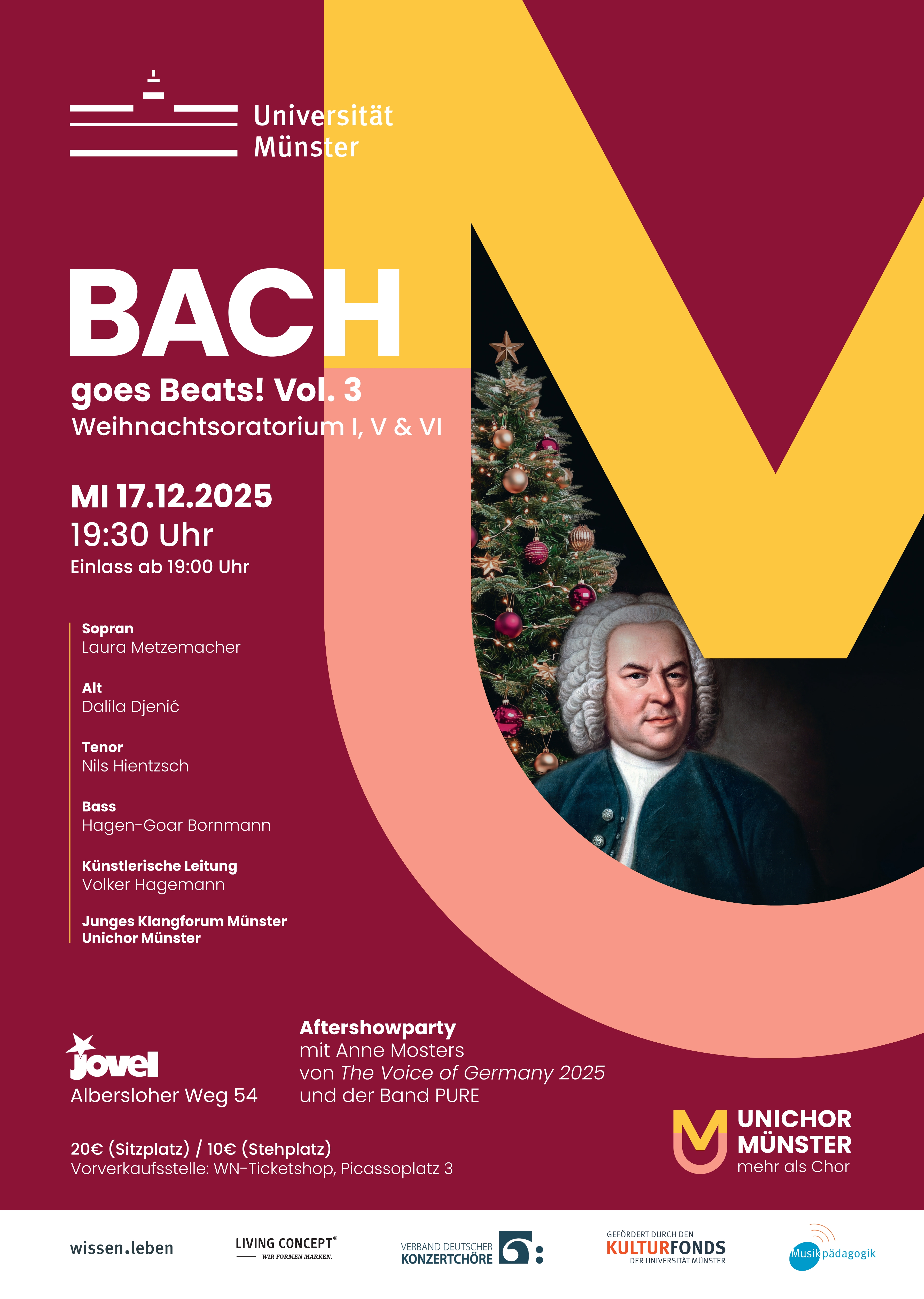 Doch mit dem fulminanten Schlusschor soll dann lange noch nicht Schluss sein: Nach barocker Klangpracht geht es nahtlos weiter auf der Aftershowparty im Jovel Club mit Anne Monsters von The Voice of Germany 2025 und der Band PURE.