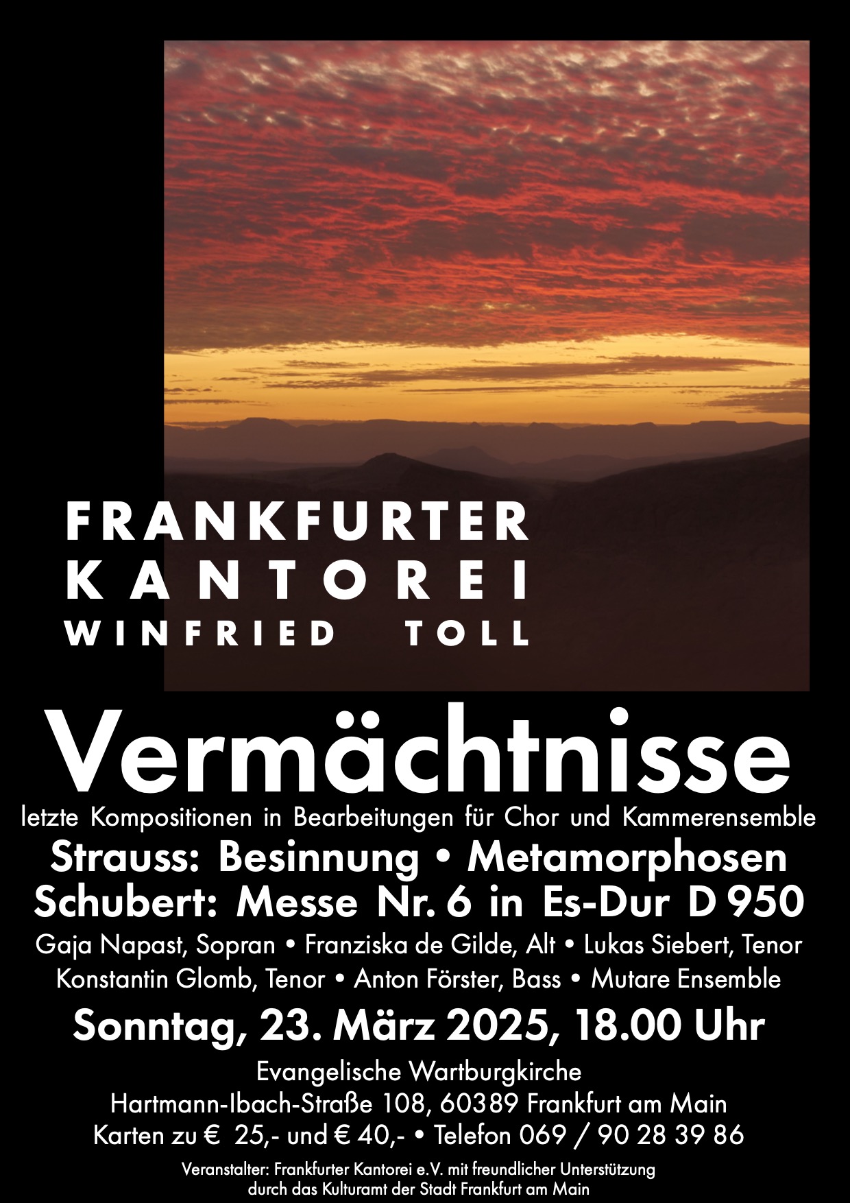 - https://www.adticket.de/Vermaechtnisse-Letzte-Kompositionen-von-Richard-Strauss-und-Franz-Schubert/Frankfurt-am-Main-Evangelische-Wartburgkirche/23-03-2025_18-00.html