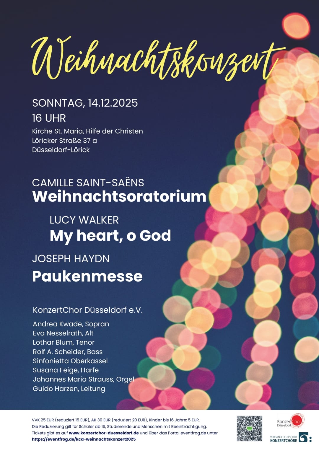 Unser Chor, der KonzertChor Düsseldorf, führt am 3. Adventssonntag 2025 ein festliches Weihnachtskonzert in Düsseldorf-Lörick auf.