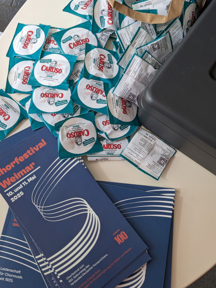 Wer zwischendurch eine Hörpause brauchte, konnte sich die Ausstellungen „Chor der Bilder I + II“ in der Stadtbibliothek (24.03.–10.05.) und im Weimar Atrium (02.–10.05.) ansehen, die dort als Resultat eines das Jubiläum begleitenden Kunstprojektes mit der Weimarer Mal- und Zeichenschule hingen. Selbst das Kommunale Kino im mon ami brachte sich mit einem Chorfilmabend (19 und 20 Uhr) aus Anlass des Jubiläums mit zwei zum Thema Chor passenden Sondervorführungen von Filmen in das Fest ein: Zu sehen waren „The Kicksled Choir (Schweden 2020) und „Heaven can wait“ (Deutschland 2013).