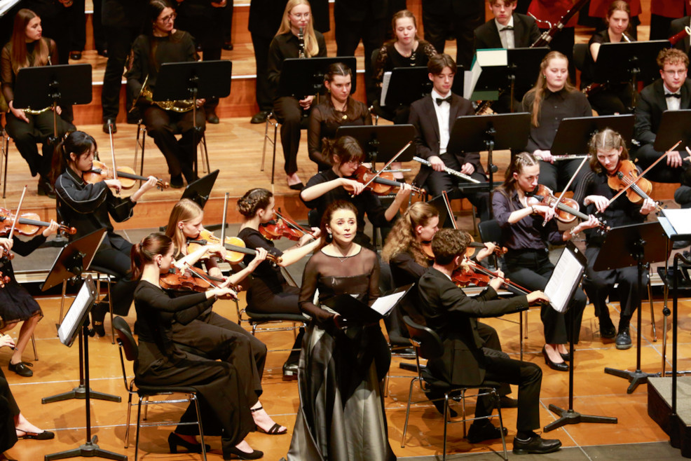 Als weiterer Höhepunkt erklang die Uraufführung der Auftragskomposition „Stundenfäden“ zum Jubiläum von Kathrin Denner. Das letzte Werk, die „Walpurgisnacht“ von Mendelssohn-Bartholdy nach einem Text von Goethe, fügte sich als Verneigung vor dem großen Sohn der Stadt Weimar perfekt in das Festkonzert ein und vereinte neben den hervorragenden Solist*innen Seda Amir-Karayan, Florian Neubauer und Jakob Kress einen 180 Personen starken Festivalchor aus den Mitgliedern der Chöre tonart Bergisch Gladbach, Philharmonischer Chor Essen und Singakademie Cottbus. Der Dirigentin Katharina Müllner gelang es, aus dem Landesjugendorchester Thüringen und dem Festivalchor – Ensembles, die vorher noch nie miteinander musiziert hatten – ein fulminantes, gut geführtes Klangerlebnis zu zaubern.